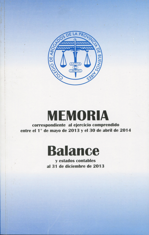 Memoria : del ejercicio comprendido entre el 1º de mayo de 2013 y el 30 de abril de 2014 y : balance : al 31 de diciembre de 2013.