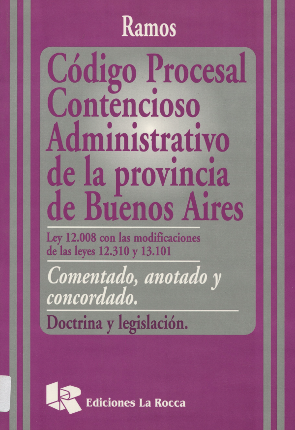 Código Procesal Contencioso Administrativo de la provincia de Buenos Aires : ley 12.008 con las modificaciones de las leyes 12.310 y 13.101 : comentado, anotado y concordado : doctrina y legislación.