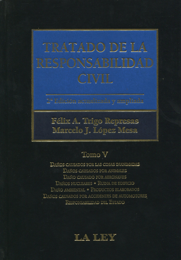Tratado de la responsabilidad civil : tomo V : daños causados por cosas inanimadas : daños causados por animales : daño causado por aeronaves : daños nucleares : ruina de edificio : daño ambiental : productos elaborados : daños causados por accidentes de automotores : responsabilidad del estado.