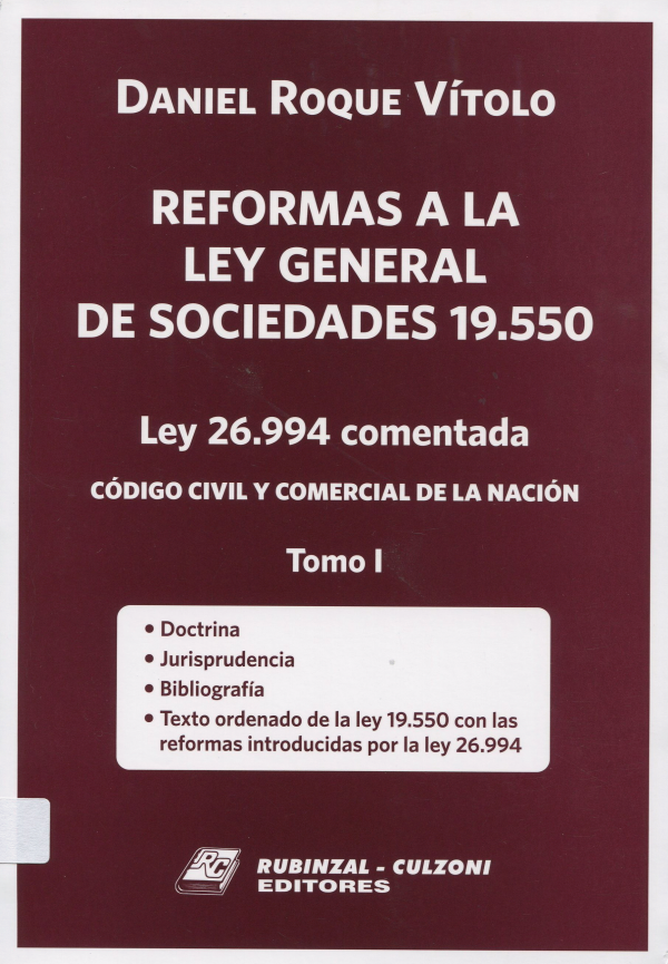 | 347.72(82) VIT t. 1 Reformas a la Ley general de Sociedades 19.550 : ley 26.994 comentada : código civil y comercial de la Nación : tomo I |