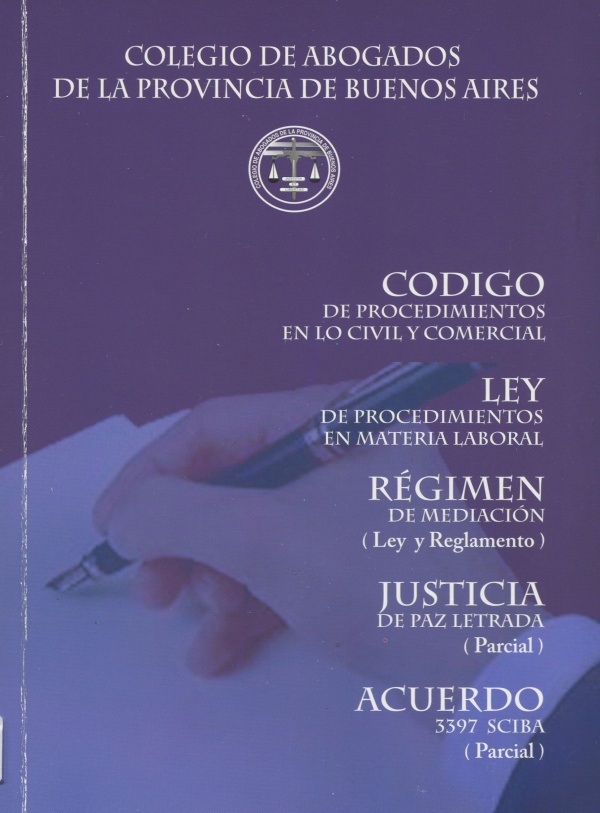 Código de procedimientos en lo civil y comercial : ley de procedimientos en materia laboral : régimen de mediación (ley y reglamento) : justicia de paz letrada (parcial) : acuerdo 3397 SCJBA (parcial).